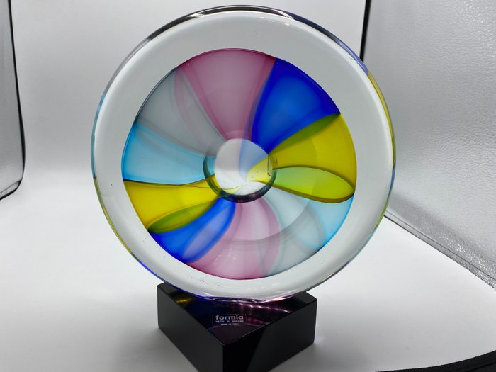 Chromatische schijf in massief Murano-glas op voet. Voor degenen die houden van de waarde van Made in Italy, hier is het unieke van een stuk dat met de hand is gemaakt in de Mian/Formia-oven in Murano, volgens een eeuwenoude kunst.