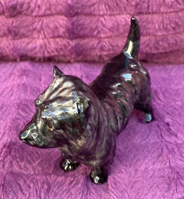 Antiek Engels Royal Doulton porseleinen Cairn Terrier beeldje, jaren 50, ontworpen door Frederick Daws, verzegeld en genummerd op de basis.