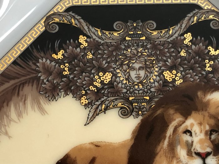 1E KEUZE. Versace porseleinen asbak uit de Rosenthal fabriek, motief leeuw, nieuw in de originele verpakking, wordt geleverd met authenticiteitskaart.