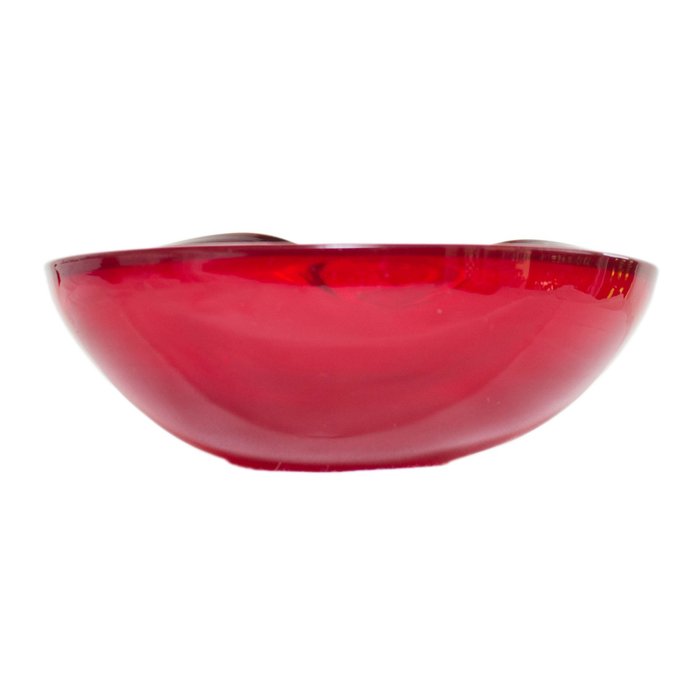 Spectaculaire Murano sigarenasbak van glas. Het stuk onderscheidt zich door zijn vloeiende vormen, door de fijne kwaliteit van het glas, maar ook door zijn intense en buitengewoon mooie robijnrode kleur. Met de hand geblazen, dit stuk wordt in zeer goede vintage staat gehouden.