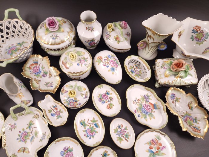 26 stuks van diverse Herend Queen Victoria patroonitems.