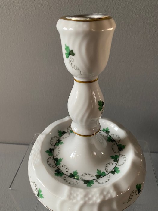 Leuke en aparte kandelaar van Herend porselein met het peterselie motief. De kandelaar is 22cm hoog en is handgemaakt en hand beschildert. De bodem is 13cm doorsnede.