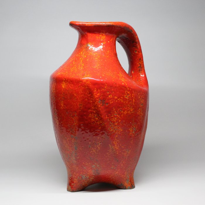Zeldzame decoratieve grote handbeschilderde vaas in mid-century stijl.