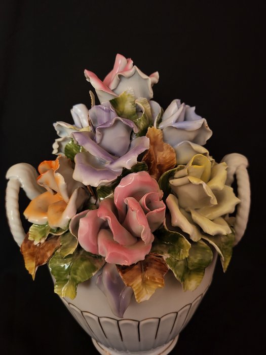 Een vaas met rozen gemaakt van fijn porselein gemaakt door Roemeense ambachtslieden in de 20e eeuw tijdens de communistische periode, helaas worden ze niet meer gemaakt omdat de fabriek gesloten is... Het beeldje is minutieus gemaakt, zeer gedetailleerd met de bloemblaadjes die uitsteken in een zeer realistische decoratie, helaas is er een kapot.. .