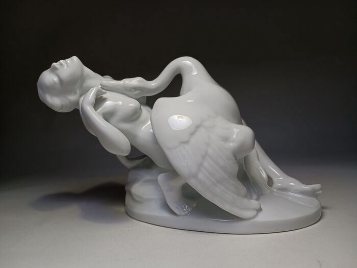 Wonderful Herend porcelain sculpture - Léda with the swan -, with white glaze, in perfect - as new - condition.