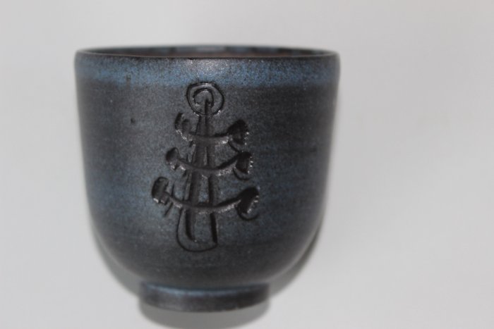 Een jaap en genummerd gesigneerde Jaap Dommisse vaas uit de jaren 50 of 60 van de 20e eeuw. Vaas is in goede conditie. Vaas is ingekrast gedecoreerd. Het is aan de buitenzijde blauw geglazuurd. Het heeft aan de onderkant bij het merk een krimplijntje in het aardewerk maar het merk is nog duidelijk te lezen.