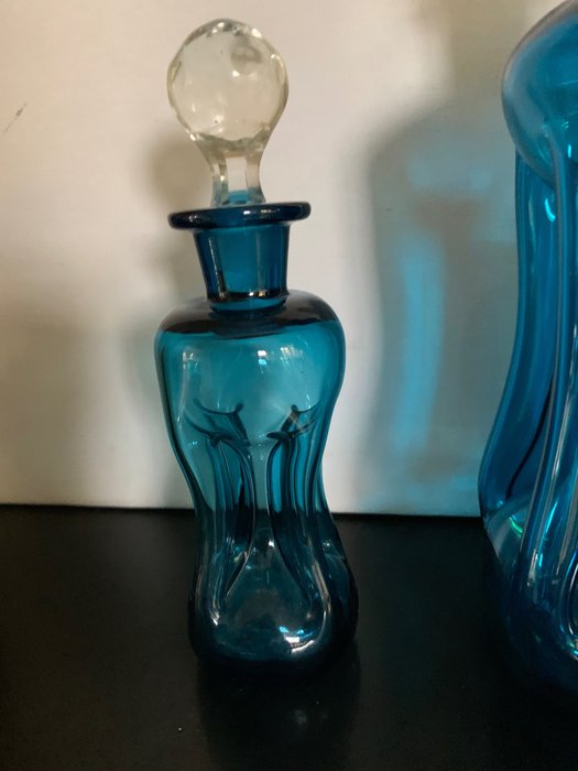 Set van 3 Vintage design kobaltblauwe glazen karaffen van Holmegaard uit Denemarken.