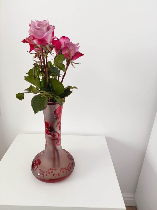 Prachtige meerlagenvaas ontworpen door Jacqueline Simon voor Val Saint Lambert.