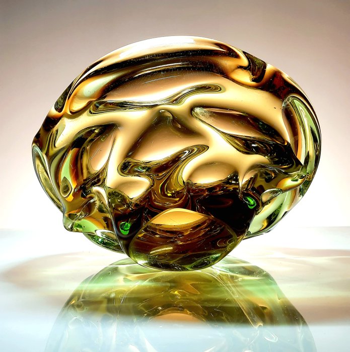 De Bowl-Asthray is een speels en organisch kunstwerk gemaakt van sommerso glas volgens de vrij geblazen methode in de jaren 60. Het is afkomstig van Jan Beranek, die meer dan 40 jaar ambachtsman en ontwerper was bij de beroemde glasfabriek in Skrdlovice. Zijn carrière was zeer productief en dankzij zijn vaardigheden kon hij vele getalenteerde glaskunstenaars ontmoeten en samenwerken, zoals Pavel Hlava, Karel Wünsch, Frantisek Vizner, Stanislav Libensky, Dana Vachtova en meer anderen.