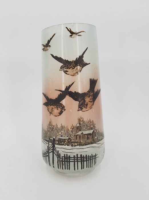 Art Nouveau glazen vazen met geëmailleerd patroon gesigneerd door de glasmaker JEM Joseph Mure (leerling van de beroemde meester glasmaker François Théodore LEGRAS.)