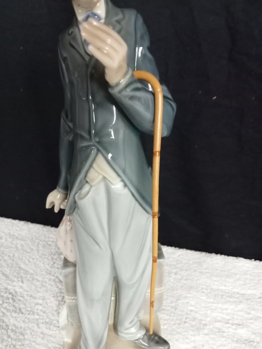 Erg mooi porseleinen Lladró beeldje van Charlie Chaplin (hoogte 28cm, breedte 9cm, diepte 6,5cm, 550g). Het beeld heeft het kenmerk 5233: ontwerper Juan Huerta, gelimiteerd geproduceerd in 1984. Het betreft een vrij zeldzaam beeld! Heel bijzonder dat de originele wandelstok (zie foto's) nog aanwezig is. Een klein bloemetje in de linkerhand, is helaas afgebroken, maar dit valt gelukkig niet op.