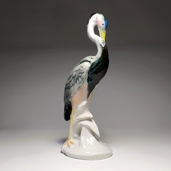 Prachtig porseleinen beeld van een reiger, van Karl Ens Volkstedt, Duitsland omstreeks 1920. In perfecte staat.