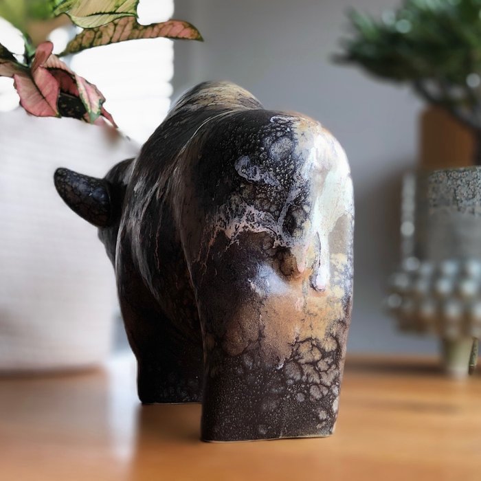 Een keramisch beeld van een stier ontworpen door Kurt Tschörner voor Ruscha keramiek, en later verder geproduceerd door Otto, Duitsland.