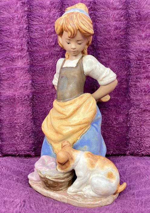 Oude Lladró porseleinen steengoed meisje wassen met haar puppybeeldje, jaren 70, verzegeld aan de basis, meet 24,5 cm hoog, heeft een deel van de strik bevestigd, hoewel het zoals te zien op de foto's nauwelijks opvalt, verder in zeer goede staat Staat, al stopgezet, zeer moeilijk te vinden, het wordt geleverd zoals het is op de foto's.