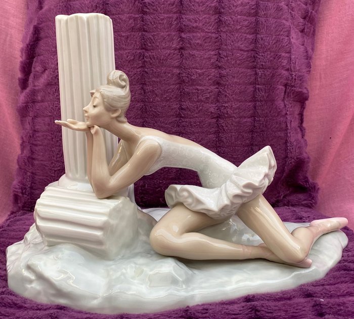 Dansende figuur op kolommen van Romeinse ruïnes in oud Lladró-porselein, uit de jaren 70, verzegeld op de basis.