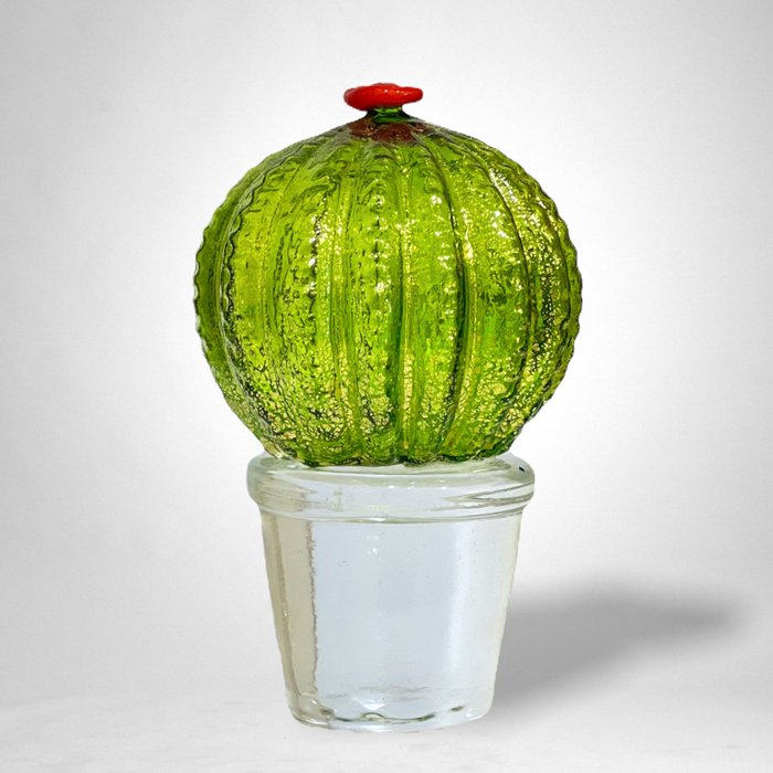 Prachtig paar Murano glazen cactussen handgemaakt en gedecoreerd met echt bladgoud door een van de beste glasmeesters van het eiland, Lorenzo Ferro.