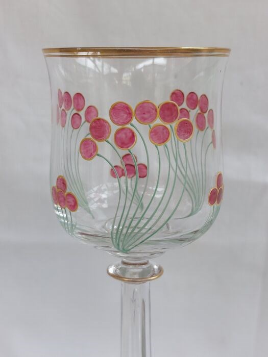 Zeer zeldzaam Jugendstil art nouveau wijnglas (hoogte 20,3 cm, diameter boven 6,0 cm) naar ontwerp van Ludwig Sütterlin voor Fritz Heckert.