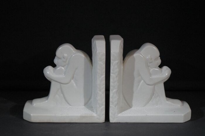 Twee boekensteunen van de Belgische fabriek Manifacture Imperiale et Royale NIMY.