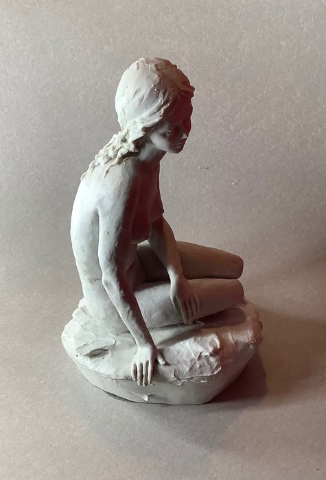 Prachtig beeldje van de Napolitaanse meester Mario Alparonem, vrouwelijk naakt in wit porselein, gelimiteerde oplage van 250 exemplaren, gesigneerd en genummerd in pasta.