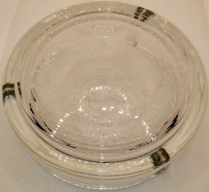 Groot formaat en gewicht vrijmetselaars asbak in kristal.