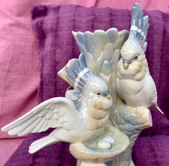 Mooie vaas of vaaspaar met kaketoes, antiek Miquel Requena-porselein, jaren 70, verzegeld aan de basis, hoogte 35,5 cm, in zeer goede staat, zeer moeilijk te vinden, geleverd zoals op de foto's.