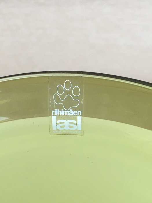 fraaie vaas Ella, ontworpen door de gerenommeerde Finse ontwerpster Nanny Still voor Riihimaen Lasi. De vaas heeft een mooi contrast tussen de groene 'kelk' en de transparante voet. De vaas is niet gesigneerd, maar bevat nog wel de fabriekssticker. De conditie is uitstekend, slechts 2 kleine krasjes van ongeveer 0,5 cm lengte (zie detailfoto).
