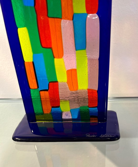 Tafelklok gemaakt met de glasfusing techniek met transparant gekleurde staven. Deze klok meet 25 x 10 cm. en met klassieke lijnen zal hij elk huis een vleugje kleur en klasse kunnen geven. Elk van onze horloges draagt altijd de handtekening op de basis om de hoge fabricagekwaliteit te certificeren.
