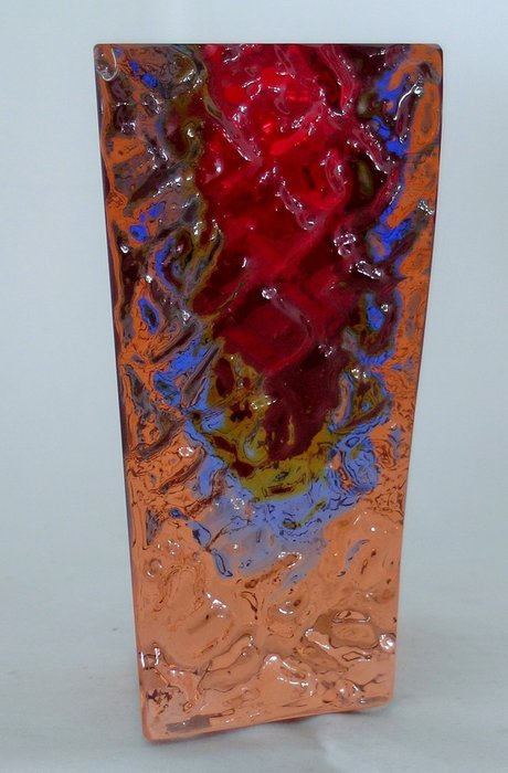 Molato vaas met incalmo in vier kleuren: rood, amber, aquamarijn en roze.