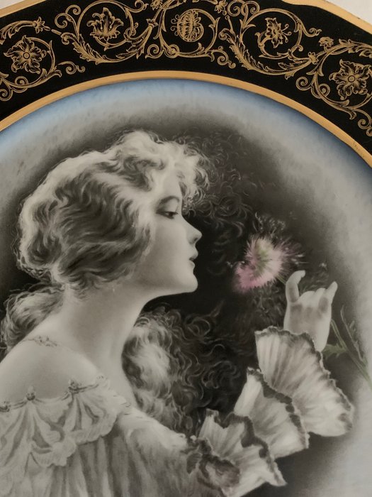 Alles is in witte tot licht naar donker grijze tinten geschilderd heel fijne details van haar mooie haren en kleed dit alles met een signatuur van Lamy.