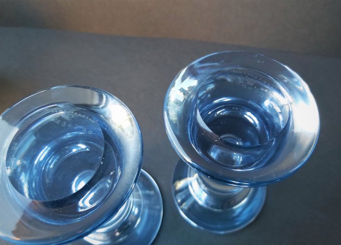 3 stukken van de firma Holmegaard uit de serie AKVA , glaskleuraquablauw. Ontwerp van