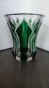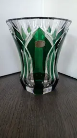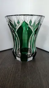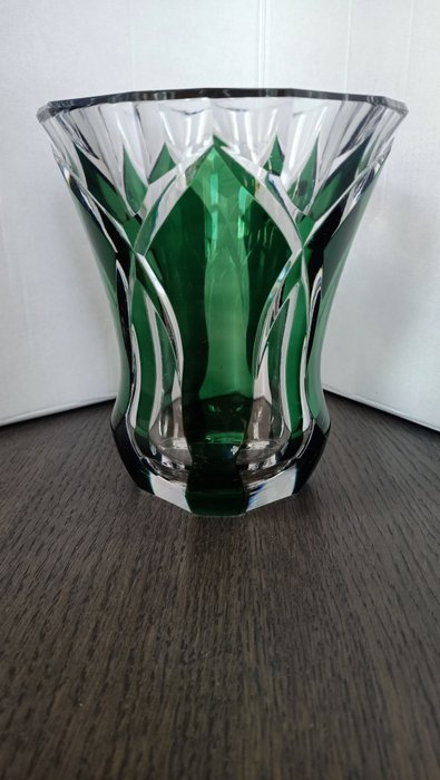 Schitterende geslepen heldere vaas met donkergroene details in Art Deco stijl van Val St Lambert uit circa 1950.