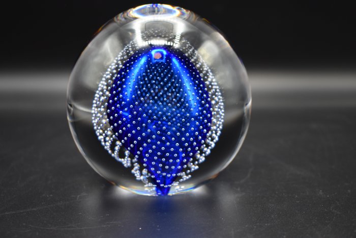Blauwe symfonie presse-papier van Romano Carrera, ontwerper van de kristalfabriek Val Saint Lambert
