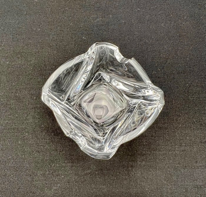Mooie vierkante kristallen asbak met wervelende ribben gesigneerd Sevres crystal France, eind 20e eeuw, uitstekende algemene staat.