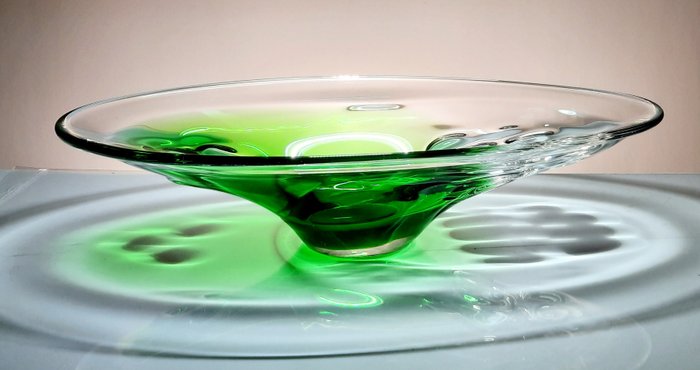Een prachtige Tsjechische Sommerso-kom gemaakt door de Skrdlovice-glasfabriek, ontworpen door meester Ladislav Palecek in 1960-99, artistieke glasmaker.