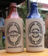 hallo, ik bas billet ben op zoek naar stenen limonadekruikjes, deze zijn altijd te herkennen aan een kroonkurksluiting. Verder zijn ze voorzien van een geglazuurde en gekleurde bovenkant. Verder staat er meestal Grapefruit ,Sparkling drink of Vruchtenlimonade op vermeld of eventueel de onderstaande firmanamen. Dubbele exemplaren zijn ook welkom.