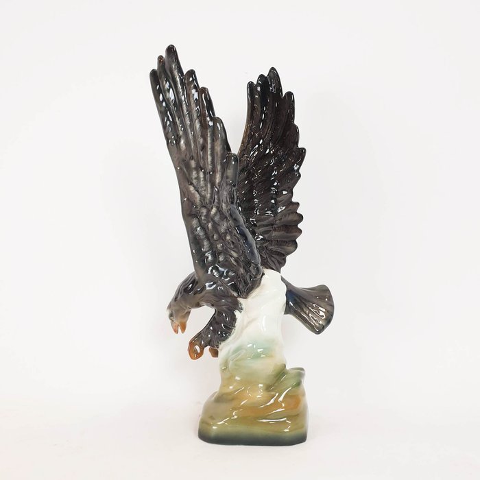 Conditie: Goed. Dit beeld is in goede vintage staat met minimale gebruikssporen. Een van de vleugels heeft een reparatie gehad die niet opvalt en is verder in zeer goede algehele staat. Er zijn geen andere chips of scheuren in het porselein. De witte vlekken op het oppervlak op de foto's worden veroorzaakt door lichtreflecties. Merkteken van de maker is zichtbaar aan de onderkant.