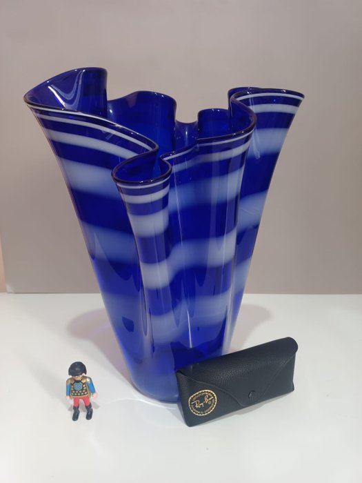 zeldzame zeer grote "vaso a fazzoletto" glazen "tissue vase" uit de jaren '80