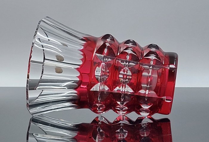 Mooie Val Saint Lambert vaas met rood uberfang decor.