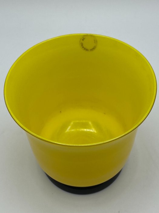 Zeldzame en verfijnde vintage gele Murano geblazen glazen vaas, "Anni Thirty" collectie, van het bekende en prestigieuze Murano bedrijf, VENINI.