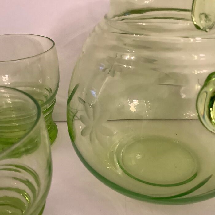 1 annagroen Radio Cut schenkkan met geslepen bloemen 16cm hoog