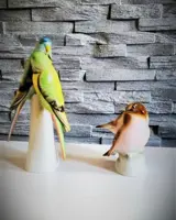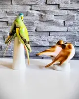 Een Hollohaza Manufactory beeldje in Art Nouveau stijl, uit het midden van de jaren '70 en een paar Zsolnay vogels uit de jaren '80.