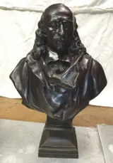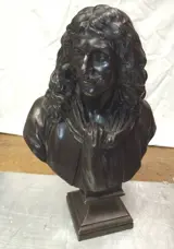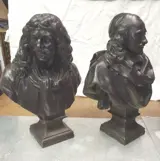 2 mooie spelterbustes van Molière en Corneille.