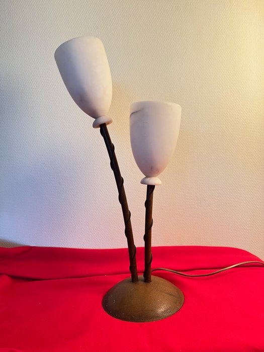 3A interieur - Tafellamp met 2 kelken - metaal en glas/marmer?
