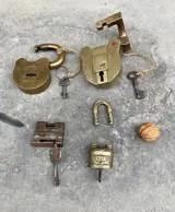 4 aparte antieke hangsloten met sleutel. (4) - messing en ijzer