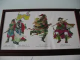4 Houten lijsten met glas v.v. 4 prenten met daarop 16 van de 108 Helden.