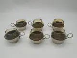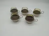 Set van 6 glazen mokken met verzilverde metalen voet uit de jaren 60, goede algemene staat ondanks het verstrijken van de tijd
