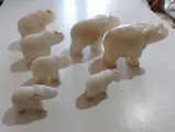 Kudde olifanten uitgehouwen in albast marmer uit het midden van de jaren 1900. In patina. Goede algemene voorwaarden. Afmeting van de grootste 10x8x4 cm. De kleinste 5x3x2 cm. Ik verzend in uitstekende verpakking met tracking. Bij geschikt materiaal inbegrepen in verzendkosten