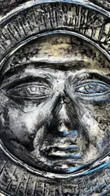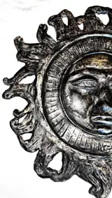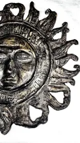 Koud geschilderd bronzen beeld dat een zon voorstelt.