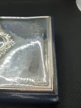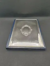 Prachtig vintage adresboek/telefoonagenda uit de jaren 90 bekleed met echt blauw leer met voorplaat in gelamineerd zilver, met het opschrift MC Ag3g 101, Made in Italy.