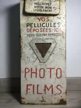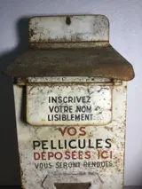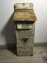 Oude straatdoos voor het deponeren van films en fotofilms, zeldzame doos op de markt te vinden, afkomstig uit een voormalige fotografenwinkel in Montebourg in de Manche (Frankrijk)